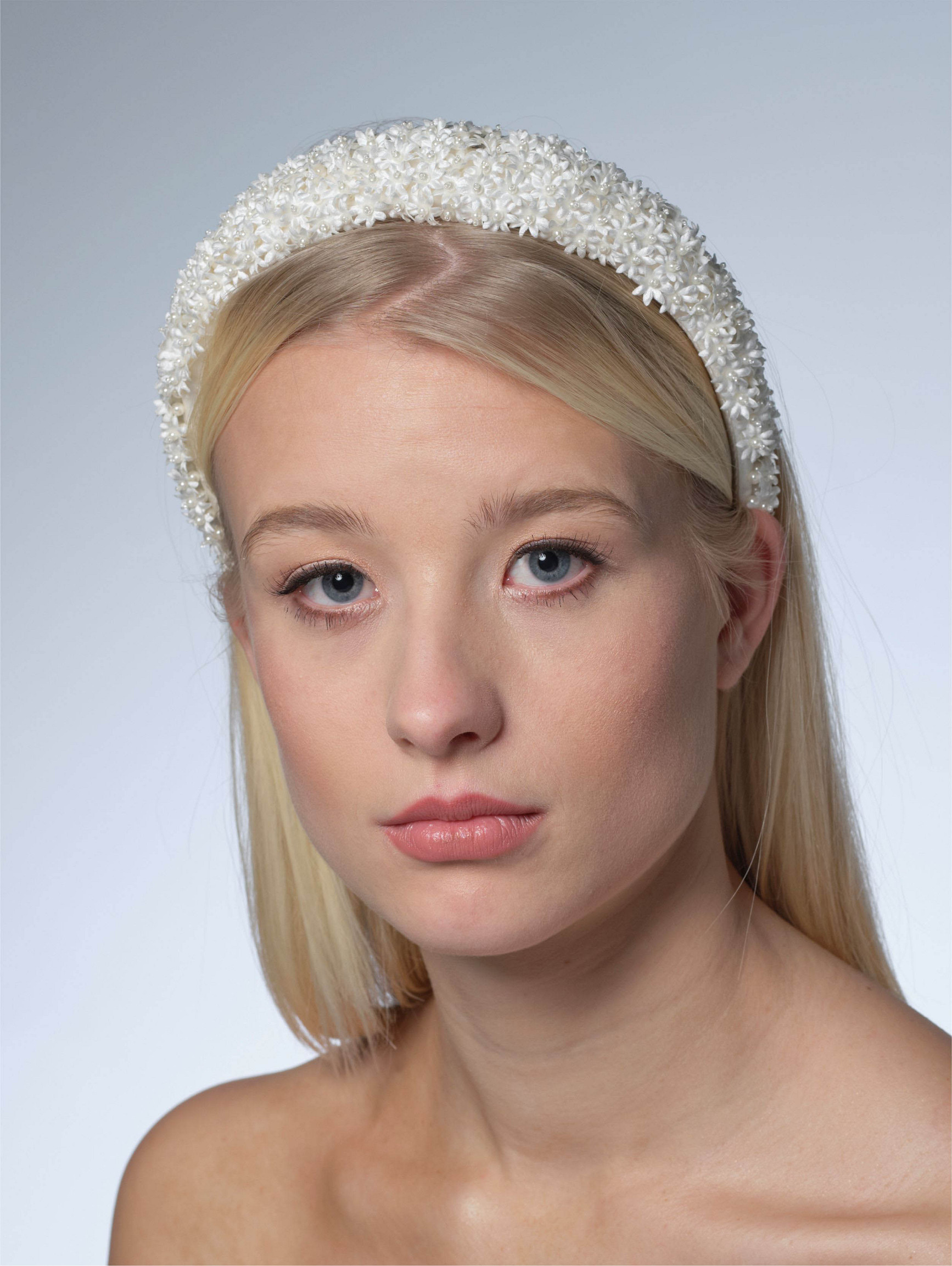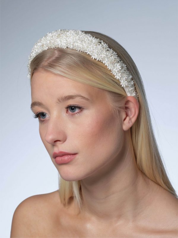 Mit diesem elfenbeinfarbenen Haarreif wählst du ein Brautaccessoire, das Natürlichkeit und Eleganz auf wunderschöne Weise verbindet. Kreiere einen Hochzeitslook, an den du dich ein Leben lang erinnern wirst – mit den besonderen Designs von Poirier.